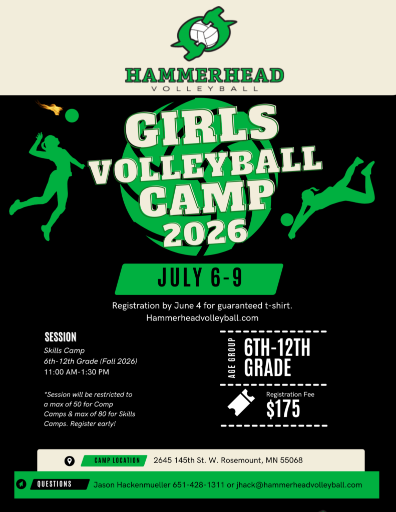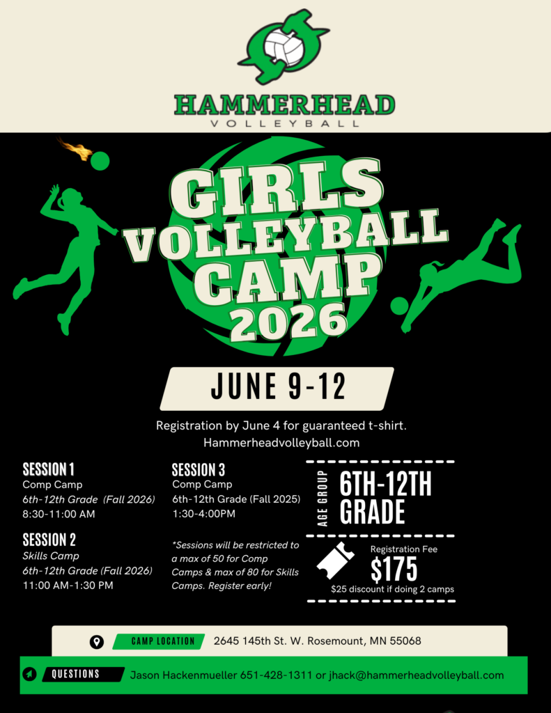 Hammerhead Volleyball is a JO Volleyball club located in the Twin Cities south metro area. We welcome players from the metro area. Currently Hammerhead Volleyball teams are available for a variety of different age groups & skill levels, from 13U to 18U.